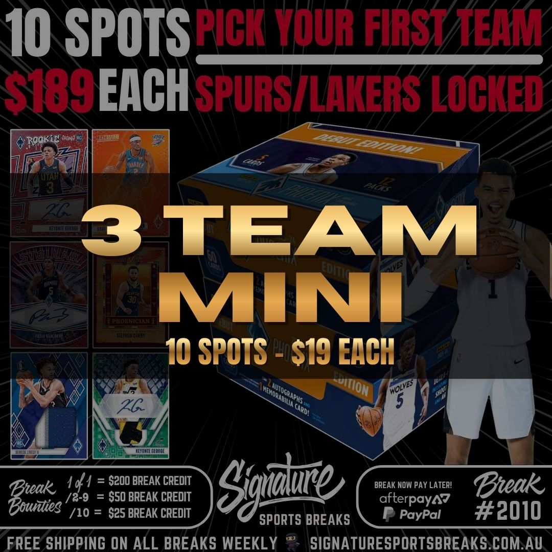 Choose your favourite team and receive every card from that team pulled during the break. Perfect if you're a die-hard fan or building a team collection.